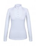• Szykowna i bardzo kobieca koszulka konkursowa • Uszyta z elastycznej, oddychającej dzianiny technicznej z recyklingu z funkcją UVP, odprowadzającej wilgoć na zewnątrz • Zapinana z przodu na ukryte napy • Wstawki z elastycznej koronki dla lepszej cyrkulacji powietrza • Przyciągający wzrok haft z kryształkami wzdłuż pliski z przodu • Ozdobiona haftowanym logo Fair Play z kryształkami