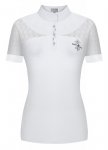 Koszulka konkursowa z krótkim rękawem wykonana z elastycznej, oddychającej dzianiny technicznej. Na rękawach posiada wstawki z siateczki, dzięki czemu jeszcze bardziej przepuszcza powietrze. Plisa polo wykończona ozdobną, perłową taśmą. Jest idealnym dopełnieniem fraka Valentina Pearl.
